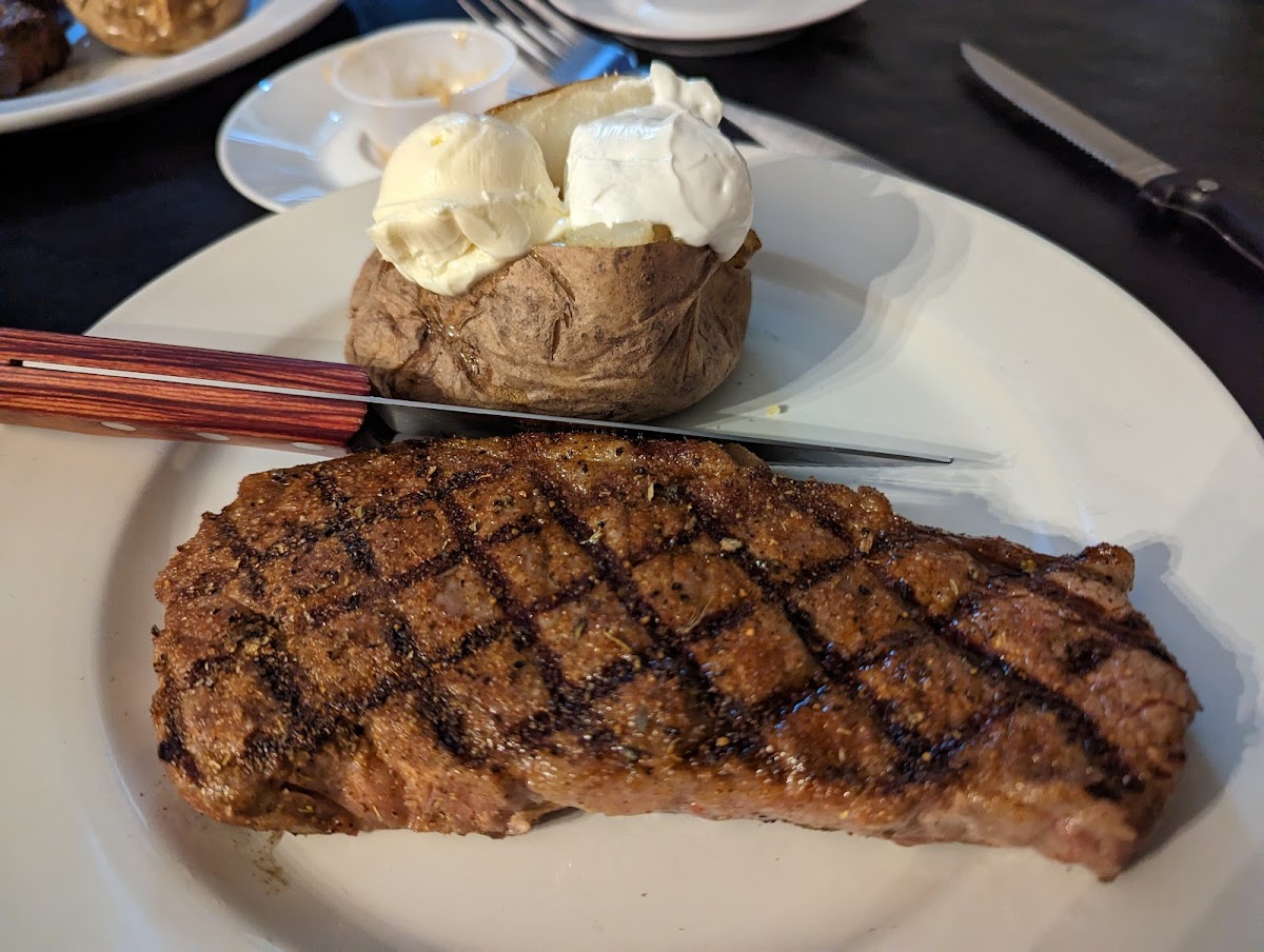 “ The dining room is small but sufficient. So happy to finally have a place for a quality steak in Clinton. My husband ordered the filet rare and it just melted in your mouth. I had the strip, also rare and it was great. I preferred the seasoning on my strip to that on the filet. Our steaks came with baked potatoes and salad. I added a side of brussel sprouts and was so happy I did. They were divine. We also had the onion straw appetizer, which I will order again. The onion was breaded perfectly and great with the dipping sauce. We split a piece of coconut cake for dessert. The piece of cake was huge. It came out warm with the icing melting off but I wouldn't have wanted it any other way, it was great. Great date night restaurant. ”